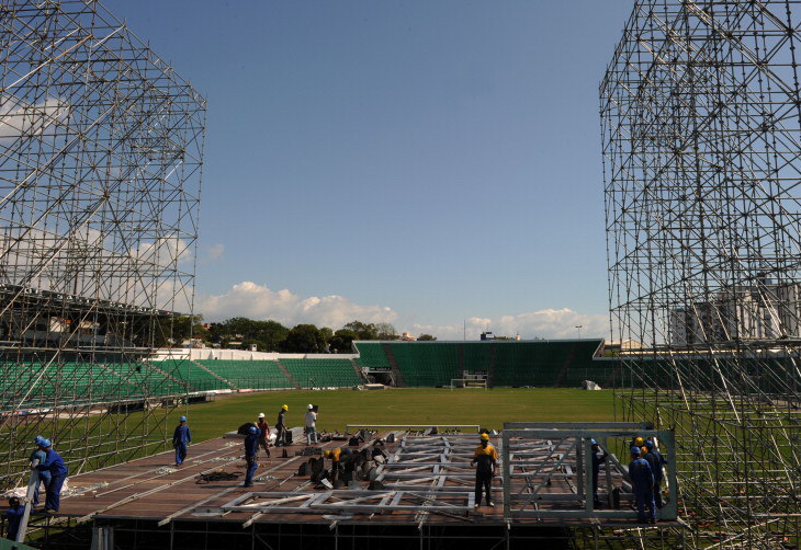 Por conta disso, Nico Gomes, o gerente de produção de toda a turnê brasileira da banda — serão ao todos nove shows realizados até dia 4 de novembro — está supervisionando pessoalmente a montagem da estrutura, e fica aqui até segunda-feira.